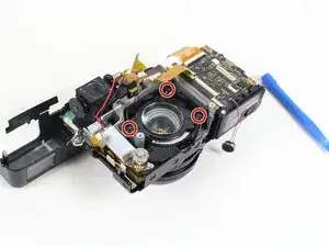 Удалите четыре винта 5,0 мм на стороне камеры, противоположной аккумулятору.