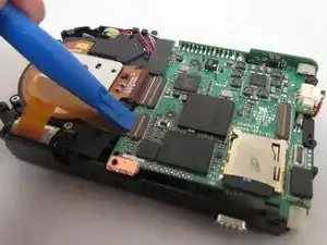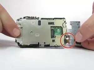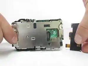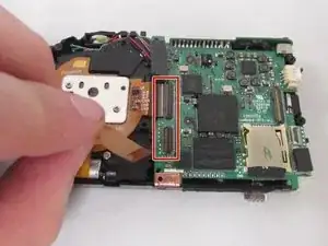 Экран прикреплён с помощью ленты-разъёма. Аккуратно потяните крышку и экран от корпуса камеры, чтобы отсоединить крышку.
