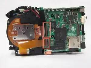 Это единственные 2 разъёма, удерживающие узел объектива на месте. После их отсоединения узел объектива будет полностью отделён от камеры.