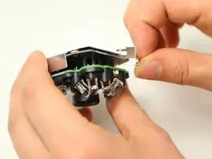 Используйте крестообразную отвёртку Phillips #00, чтобы выкрутить четыре винта длиной 4 мм на металлической задней пластине, скрепляющей дочерние платы.
