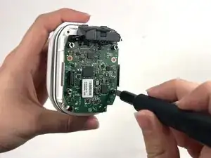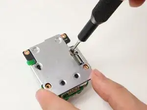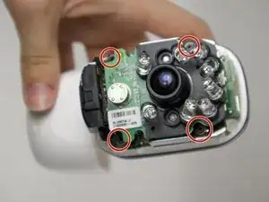 Используйте отвёртку Torx T5, чтобы выкрутить четыре винта длиной 7 мм, фиксирующие корпус камеры.