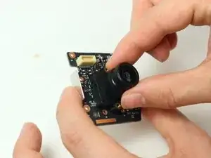 Используйте крестообразную отвёртку Phillips #00, чтобы выкрутить два винта длиной 5 мм на задней стороне дочерней платы камеры, чтобы отсоединить модуль камеры от дочерней платы.