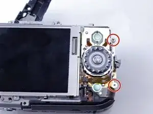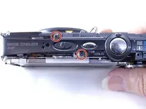 Удалите два винта PH000 длиной 3,2 мм на боковой стороне камеры справа от кнопки с надписью "Func. Set".