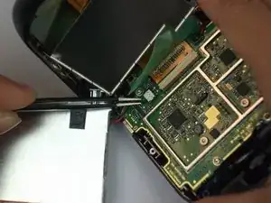 На этом шаге показано использование неверного инструмента. Всегда используйте антистатический инструмент, например нейлоновую лопатку, при работе с деликатными внутренними компонентами.