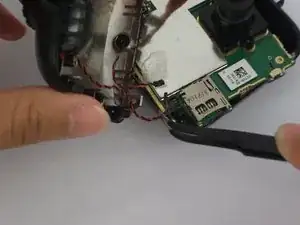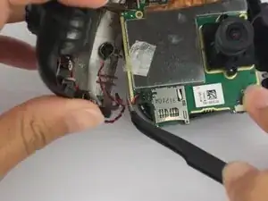Используйте пинцет, чтобы снять разъем рядом со слотом для карты SD.
