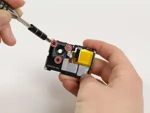 Снимите четыре винта PH00 длиной 4 мм, крепящие сенсор изображения к плате, с помощью вашей отвёртки.