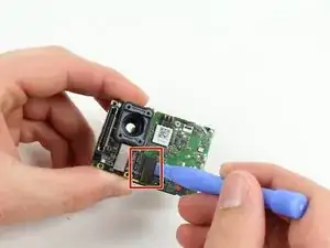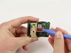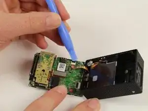 Осторожно извлеките плату, поддев её пластиковым инструментом для вскрытия, чтобы вынуть из корпуса.