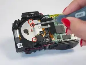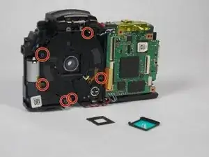 Удалите 6 винтов (4,35 мм), окружающих объектив.