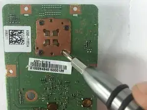 С помощью пинцета приподнимите серебристую теплоотводящую ленту с материнской платы.