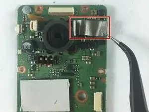 С помощью пинцета аккуратно вытяните и снимите разъём, соединяющий объектив с материнской платой.