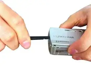 Удалите две ленты на левой стороне объектива на передней части камеры, удерживающие объектив на месте.