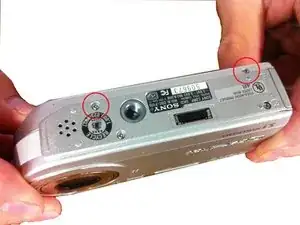 Удалите два винта на задней стороне камеры вокруг экрана LCD.
