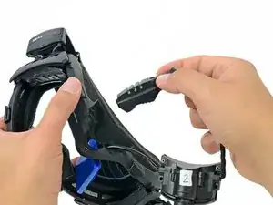 Когда низ освободится, продолжайте тянуть, чтобы освободить нижнюю часть крышки крепления ремня от оправы.