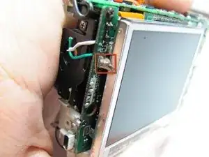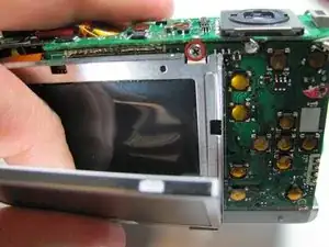 Удалите винт под ЖК-экраном крестовой отверткой Phillips #00. Длина винта 4.1 мм.