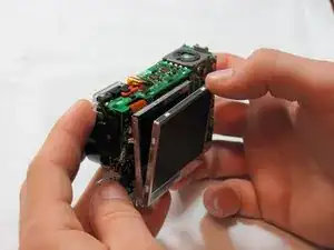 Вытащите ЖК-экран из внешнего корпуса большим пальцем.