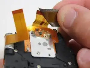 Перед установкой нового объектива снимите серебристую ленту, прежде чем вставить шлейф в нужный слот.