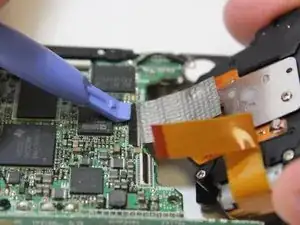 Поднимите фиксатор шлейфа с помощью пластикового инструмента для открытия.