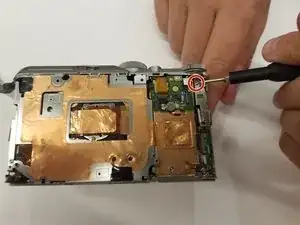 Удалите винт Phillips #00 длиной 3,4 мм. Повторите с противоположной стороны камеры.