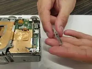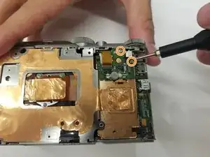 Удалите два винта Phillips #00 длиной 2,5 мм, удерживающие маленькую плату. Снимите маленькую плату.