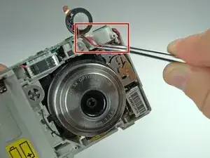 С помощью пинцета оттяните проводку в верхнем правом углу камеры от объектива.
