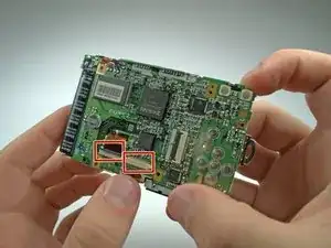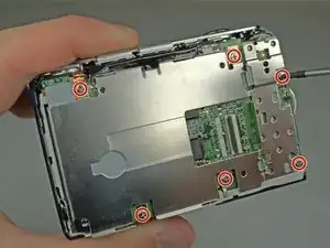 Отверткой Phillips #00 удалите 6 винтов, закрепляющих основание ЖК-экрана на материнской плате.