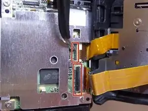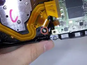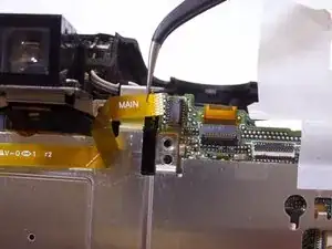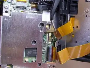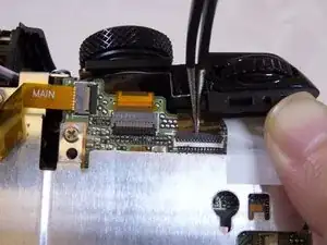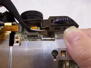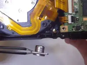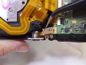 Используйте пинцет, чтобы снять крупный ленточный провод, расположенный под винтом.