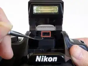 Кнопка вспышки расположена слева от отсека встроенной вспышки.