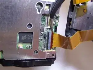 Используйте пинцет с тонкими губками, чтобы осторожно поднять чёрно-серый язычок в сторону ленточного провода (язычок поворачивается вверх для освобождения и защёлкивается вниз для фиксации).