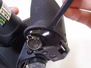 Вставьте пластиковый инструмент для вскрытия под кнопку спуска затвора.