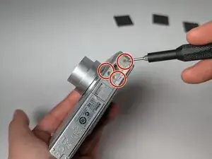 Используя крестовую отвёртку №00, выкрутите винты длиной 2,8 мм, расположенные на дне и боковых сторонах камеры.