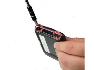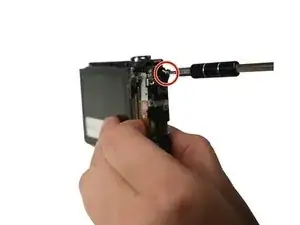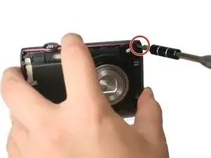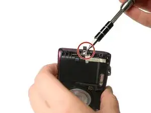 Используя крестовую отвертку Philips #000, выкрутите винт 3,40 мм, расположенный на передней части камеры в верхнем углу рядом со светодиодом.