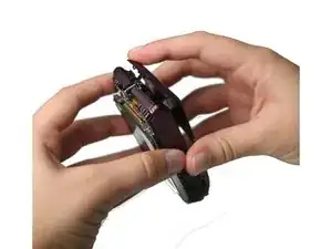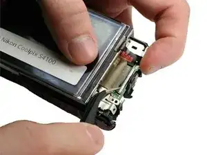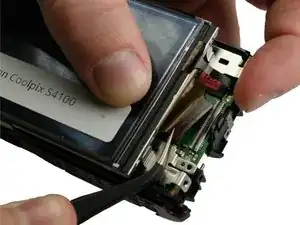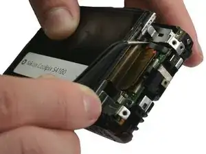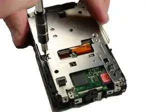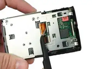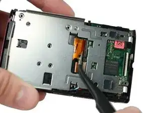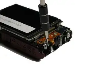 Используя крестовую отвертку Philips #000, выкрутите 7 винтов Philips длиной 3,4 мм из металлического крепления ЖК-экрана камеры.