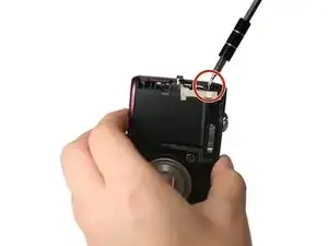 Используя крестовую отвертку Philips #000, выкрутите винт 3,30 мм, расположенный на стороне камеры рядом с креплением шнурка.