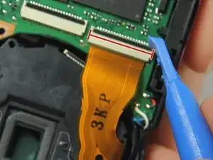 Для отключения л Ribbon-кабеля используйте наконечник пластиковой лопатки или ноготь, чтобы поднять маленькую защитную крышку. Затем вы можете аккуратно извлечь л Ribbon-кабель.