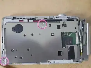 Две области, выделенные красным, содержат подвижные детали. Следите за этими деталями, поскольку их легко потерять. После снятия верхней части корпуса они скорее всего выпадут. В частности, за держателем батареи находится маленькая пружина, которую очень легко потерять.