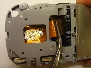 Удалите один винт с правой стороны экрана LCD крестовой отверткой #00 из внутреннего корпуса камеры.