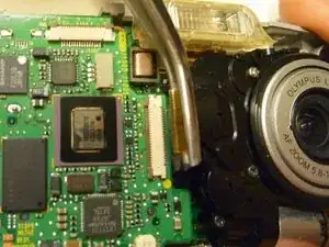Это руководство показывает, как заменить объектив камеры и прилегающие механизмы (включая мотор) на Olympus D590.