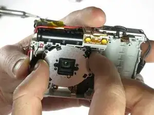 Снимите 3 винта, удерживающие сборку объектива на месте.