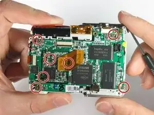 Снимите три винта, удерживающие внешнюю плату на месте.