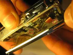 Открутите винты длиной 2 мм, крепящие боковые части камеры и заднюю панель, с помощью отвёртки Phillips #00.