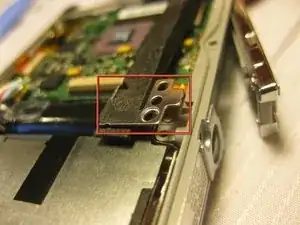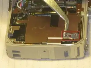 Удалите четыре металлических фиксатора по углам, где были закреплены винты длиной 2 мм, с помощью пинцета.