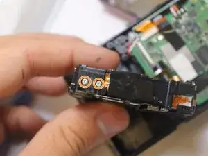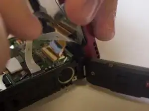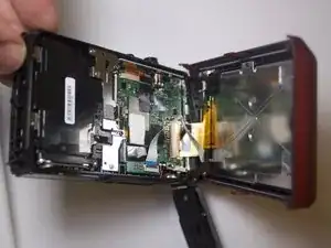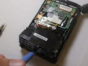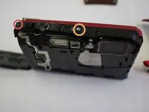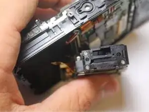 Найдите и удалите два винта на левой стороне камеры с помощью Phillips #000, затем снимите металлические пластины, на которых они располагаются.