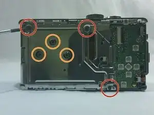 Снимите 3 винта Phillips 4 мм, расположенные на алюминиевом покрытии внутри камеры.