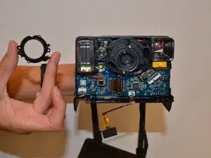 Удалите два винта Phillips #0 длиной 3 мм, которые удерживают объектив, и снимите кольцо.