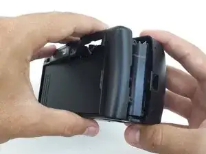 Нажмите пальцем на верхнюю часть серого зажима с левой стороны камеры.