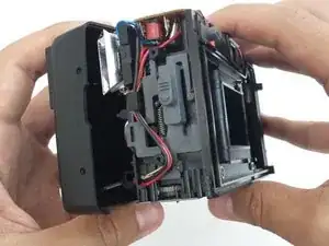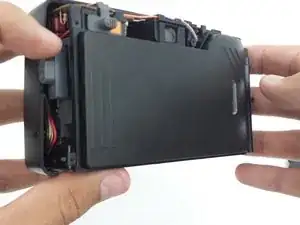Объектив прикреплён только к основному корпусу камеры. Отложите переднюю и заднюю крышки в сторону.