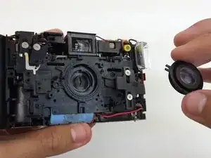 Пальцами или пинцетом извлеките объектив из камеры.