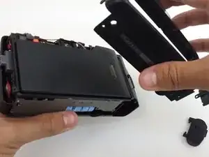 Ослабьте заднюю крышку с обеих сторон камеры — с левой и с правой. Снимите заднюю крышку.