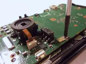 Снимите все 4 винта PH(00), это освободит объектив от платы.