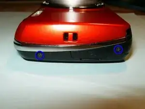 Удалите два винта с боковой стороны устройства, слева от объектива камеры.